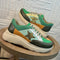 ?? Un diseño que pisa fuerte: Star combina actitud urbana con una mezcla cromática vibrante. El contraste entre verde, mostaza y detalles oro crea una zapatilla que no pasa desapercibida.
