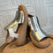 El acabado plata metalizado aporta luminosidad y fuerza, mientras que la base en color blanco y el diseño abierto le dan ligereza. Una propuesta pensada para acompañarte en jornadas activas sin perder el estilo.
