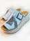 Confeccionada artesanalmente en cuero vacuno natural, este modelo en color blanco combina una base neutra con detalles en textura metálica y una hebilla lateral que le da carácter. Su plataforma liviana y su interior forrado garantizan confort para usar todo el día sin esfuerzo.