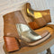 👢 POMPEYA es una bota con presencia. El cuero croco café con leche se funde con el impacto del oro metalizado, creando un contraste vibrante, elegante y original.